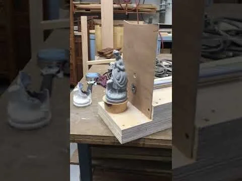 Created as an alternative option for the breakaway shepherdess, a 3 part plaster mold was made of the original figurine (by Susan DeConcini). Once de-molded, the plaster was ratchet strapped closed and filled with clay slip. After 10 minutes, the clay was poured out, leaving a 1/4” thick slipcast of the original statue. When mostly dried, it was carefully removed from the mold, allowing both the clay and plaster to dry out completely. Once dry, the figure’s base was shaved flat and spray painted white. Each cast took an hour to complete. Despite being the cheaper option, the Isomalt version of the shepherdess was selected, because it shattered more realistically. Shattering mechanism constructed by Grant Larouere.