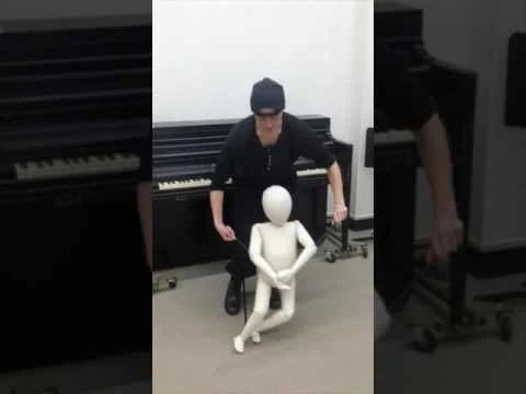 Life-sized toddler puppet constructed from dowels, foam, and batting, and covered in muslin. The puppet is suspended on strings connected to a hat that sits on the puppeteer’s head and controlled by dowels attached to the puppeteer’s arms and legs. The hands are controlled by strings tied to springs. This was constructed over a two week period.